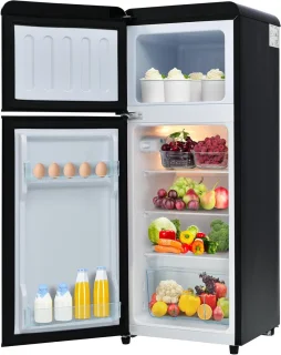 Voeg deze compacte retro koelkast met vriezer vandaag nog toe aan je winkelwagen en combineer vintage charme met modern gebruiksgemak!