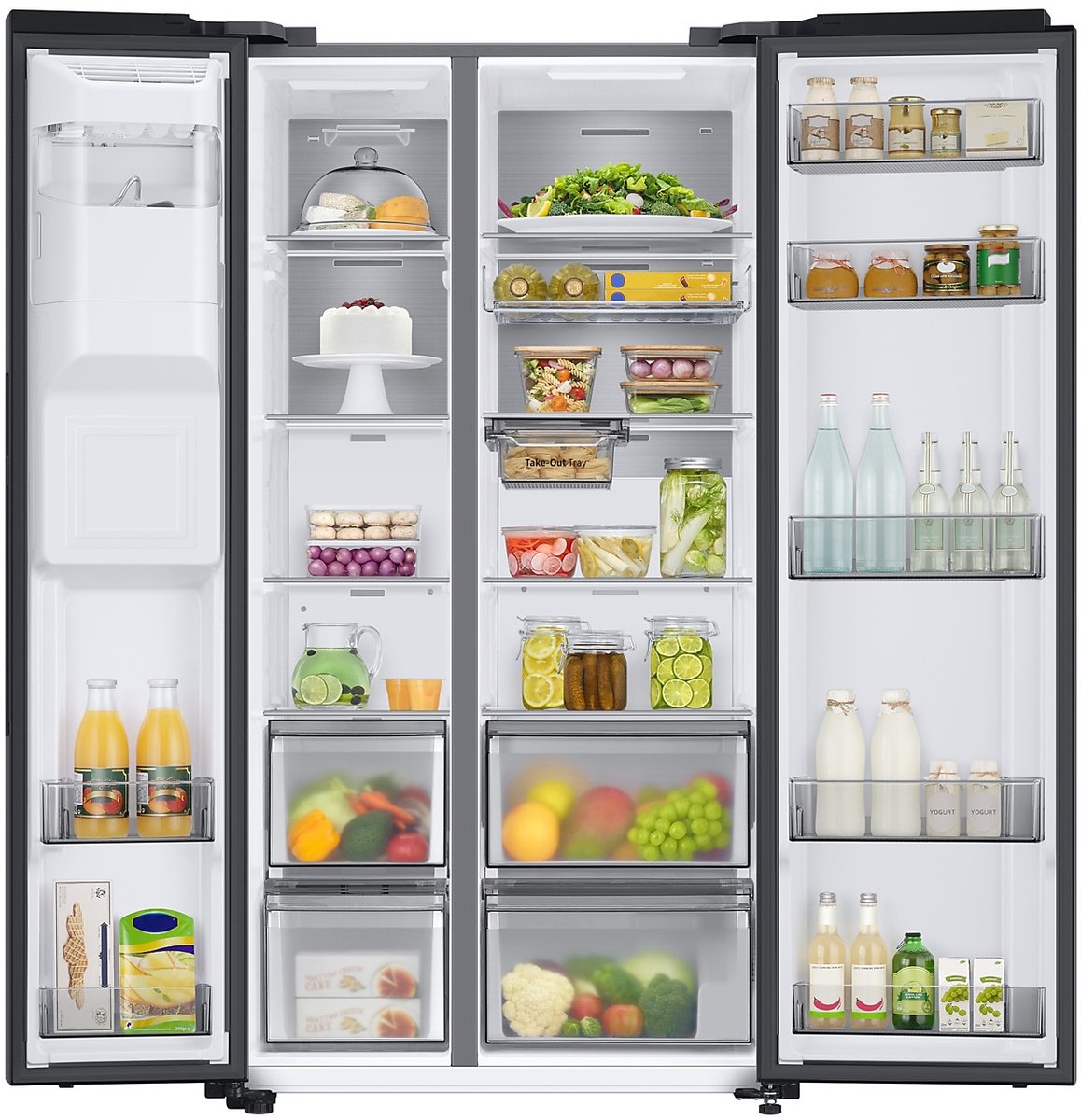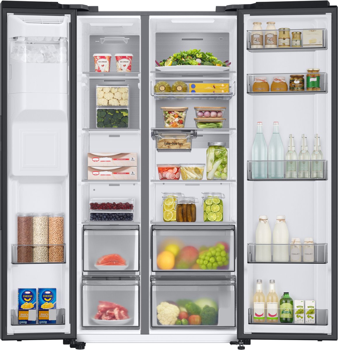 Ontdek de ultieme combinatie van geavanceerde technologie, royaal opbergvermogen en slimme functies met de Samsung RS68CG885DB1/EF. Deze Amerikaanse koelkast biedt niet alleen een stijlvol zwart design, maar ook een indrukwekkende inhoud van 634 liter, waardoor u volop ruimte heeft voor al uw boodschappen en favoriete producten.