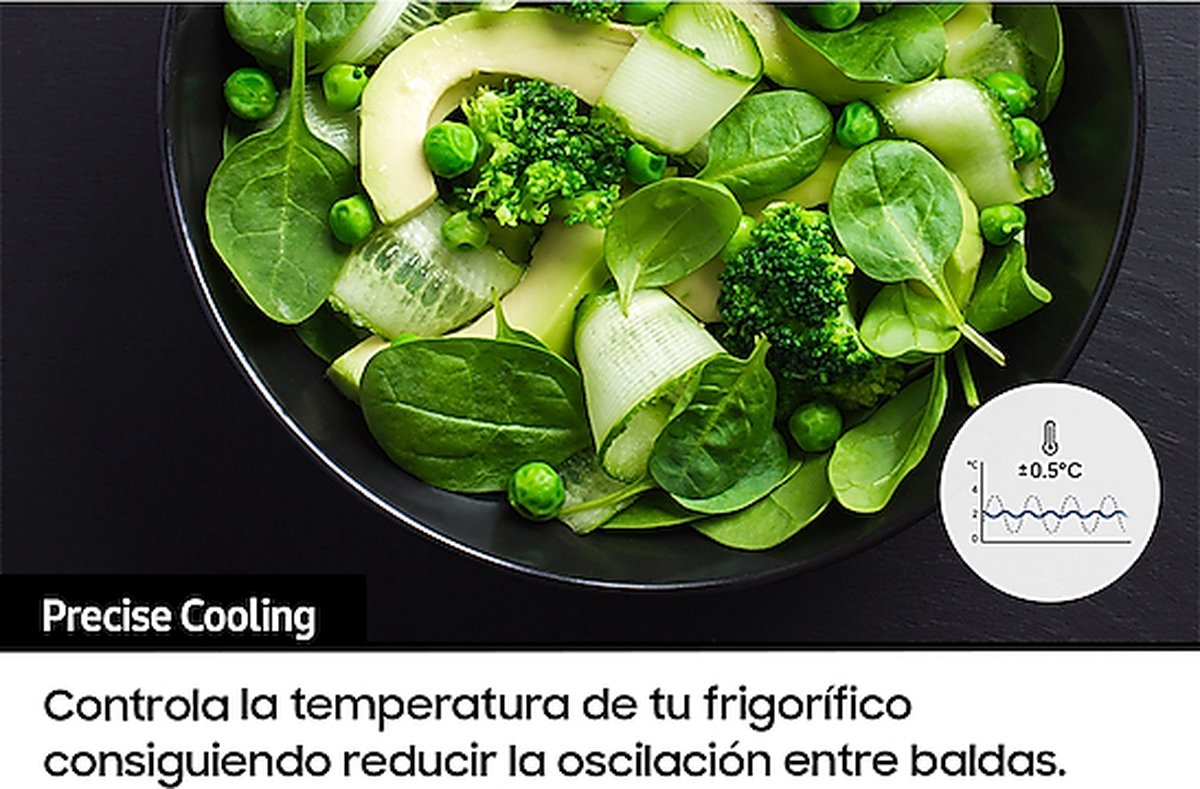 - NoFrost en Twin Cooling Plus: Dankzij deze innovatieve systemen voorkomt u ijsvorming en behoudt u de optimale vochtigheid in zowel het koel- als het vriesgedeelte. Uw voedsel blijft tot twee keer langer vers, zonder dat u zelf hoeft te ontdooien. Geur van delicatessen blijft gescheiden, waardoor alles fris en puur blijft.