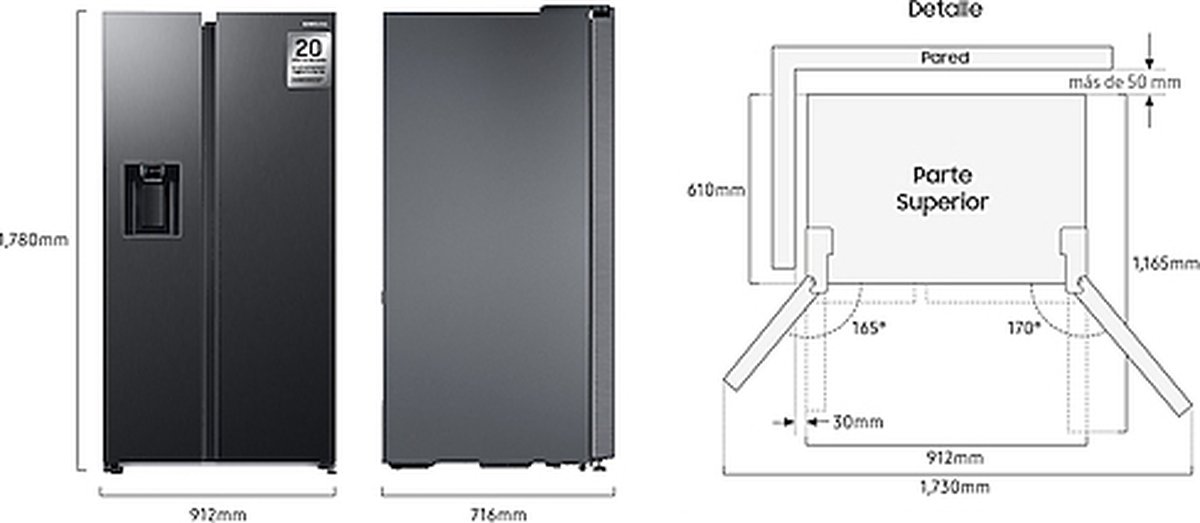 Met afmetingen van 178 cm hoog en 91,2 cm breed past deze Amerikaanse koelkast ideaal in een ruime keuken. Het strakke staal en het gebruiksgemak maken het tot een stijlvolle en praktische toevoeging aan uw huis. Daarnaast is de energieklasse D en verbruikt hij gemiddeld 281 kWh per jaar, wat zorgt voor een milieuvriendelijke keuze.